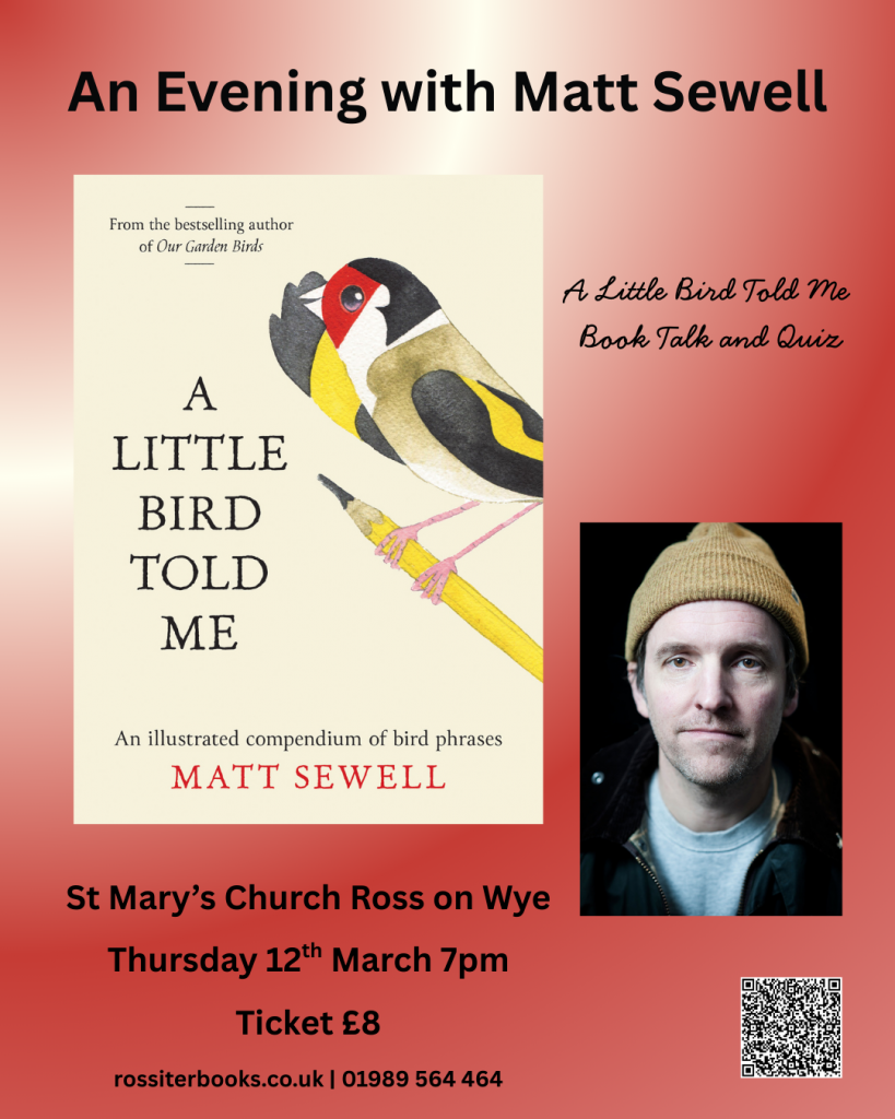 Artist, author and Illustrator Matt Sewell will give a talk about his art, his new book A Little Bird Told Me and will host a fun quiz on bird phrases. Matt Sewell has been described as the Banksy of the bird world.